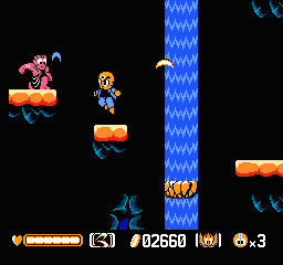 Beyond his third-eye blasts, Sharaku is equipped with the Red Condor, a versatile harpoon functioning both as an offensive tool and a grappling hook. Players will find mastering the Red Condor crucial for reaching hidden platforms, avoiding traps, and pulling enemies closer for combo attacks. As you progress, shops scattered throughout levels offer upgrades—extra lives, improved weaponry, and an enhanced Red Condor—purchased with coins collected from foes or from cleverly hidden chickens lurking in the environment.