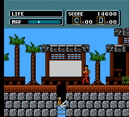 Visually, The Karate Kid employs charming 8-bit sprite art that does justice to both the film’s colorful dojo interiors and the lush Okinawan backdrops. Character sprites are well-animated, with clear frames for each punch, kick, or block—no small feat for the hardware constraints of the mid-’80s era. Background elements, like paper lanterns swaying in dojo hallways or coconut trees framing an island village, add atmosphere without overwhelming the action.