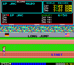 The game’s variety of events across different versions—100-meter dash, hammer and javelin throws, long and triple jumps, hurdles, skeet shooting, archery—ensures you’re never bored by repetition. Each new discipline introduces fresh mechanics and timing challenges. Even the platform differences (MSX’s 400-meter dash swap, Famicom’s pared-down roster) encourage curiosity about which version best suits your playstyle.