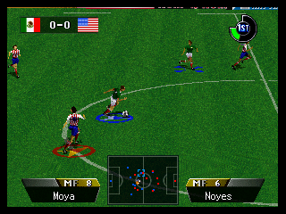For a Nintendo 64 title, ISS 64 excels in its graphical presentation. Players are rendered with clear, distinguishable kits and basic but charming facial details, while stadiums are populated by lively, if somewhat repetitive, crowd sprites that cheer and wave flags as the action unfolds. The vibrant color palette makes each pitch feel alive, and subtle animations—like players dusting themselves off after a slide tackle—enhance immersion.