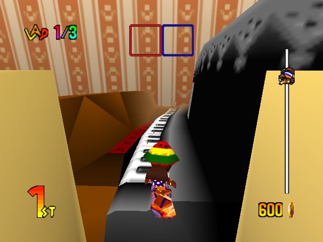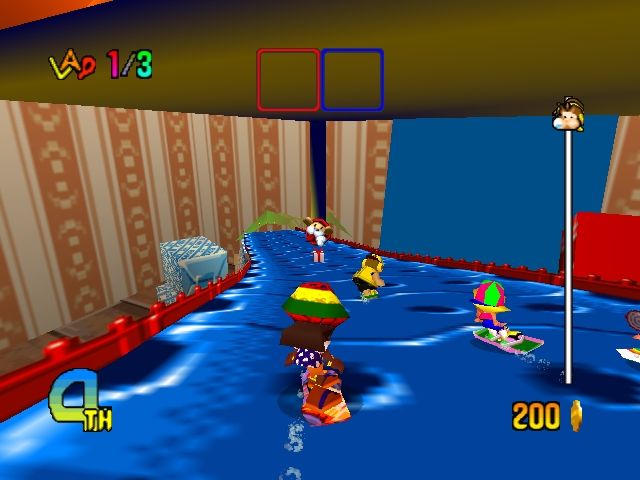 Snowboard Kids 2 strikes a vibrant balance between trick-based snowboarding and lighthearted arcade combat. Players glide down winding courses, chaining together flips, grabs, and spins to rack up style points while maintaining speed. Landing tricks rewards “credits,” which serve as in-game currency. This credit system adds a strategic layer: do you spend resources on a faster board, a trick-friendly setup, or powerful ranged items to sabotage your rivals?