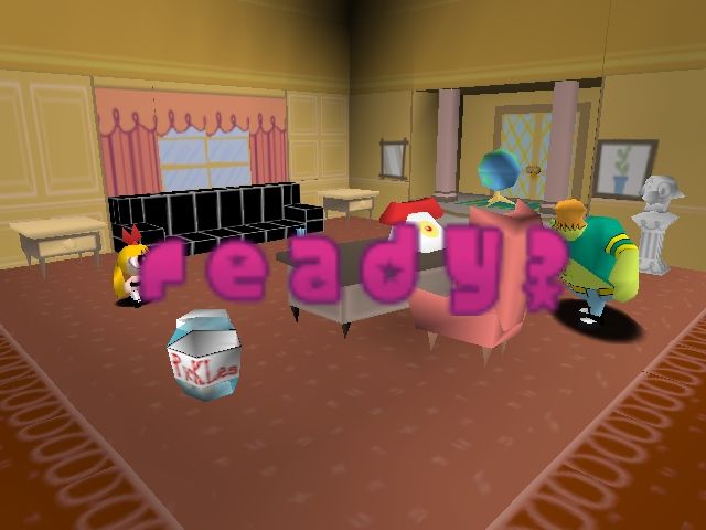 Graphically, Chemical X-Traction leans into bright, cartoony visuals that echo the TV series’ signature art style. Characters are rendered as low-polygon 3D models with bold colors and simplified shading, which preserves their instantly recognizable silhouettes. While the texture resolution is modest—typical for the late ’90s hardware—Blossom’s red bow, Bubbles’ pigtails, and Buttercup’s green outfit remain clear and vibrant throughout the action. The developers did a commendable job translating a 2D cartoon into a fully three-dimensional arena.