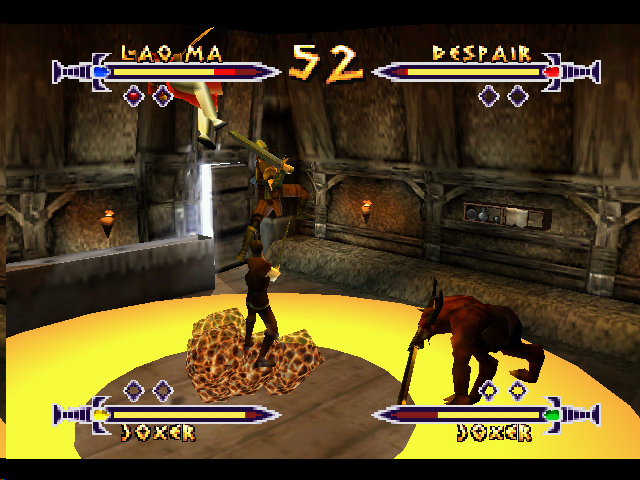The control scheme is intuitive for both newcomers and seasoned fighting-game fans. Movement is handled via the analog stick in a classic two-dimensional plane, while dedicated buttons manage blocking, jumping, and ducking. The C-buttons, meanwhile, trigger attacks—light swings, heavy blows, and weapon-specific maneuvers. Mastering the timing of analog-stick gestures toward and away from opponents unlocks the game’s special moves, giving each character a satisfying arsenal of signature combos.
