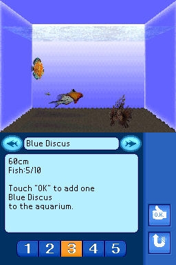 While the frame rate occasionally dips when your tank overflows with dozens of active fish, the overall presentation remains smooth. The touchscreen interface showcases your aquarium from a close-up perspective, allowing you to tap fish directly to access health stats or feeding options. Zoom controls let you admire your underwater world in wide-angle shots, making the environment feel immersive despite the DS’s modest screen size.