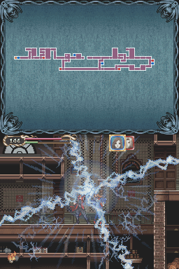 On the Nintendo DS hardware, Portrait of Ruin achieves a surprising level of detail. The main sprites are crisp and animated smoothly, giving life to Jonathan and Charlotte as they dash, whip, and cast spells. The series’ classic gothic atmosphere is enriched by subtle lighting effects that play across character outlines and environmental tiles.