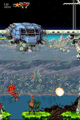 Contra 4’s pixel art is crisp and vibrant, making the most of the DS’s modest hardware. Character and enemy sprites are well-animated and detailed, with smooth transitions between running, jumping and firing. Explosions pop with layered effects, and boss encounters are punctuated by satisfying flashes and screen shakes that heighten the drama.