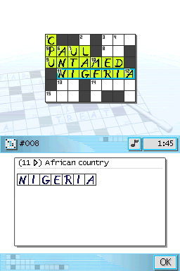 CrossworDS, short for Crosswords for Nintendo DS, faithfully recreates the classic newspaper puzzle experience on a handheld console. Players can choose between manually writing each letter with the touchpen or selecting letters on a virtual keyboard. The character recognition is impressively reliable, making handwriting input smooth and frustration-free, while the on-screen keyboard option allows for rapid entry once you’ve warmed up.