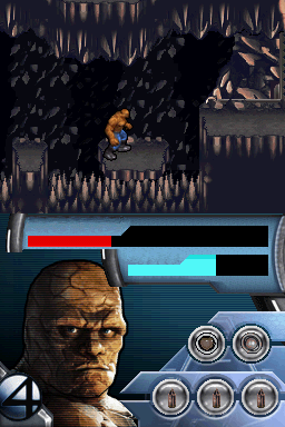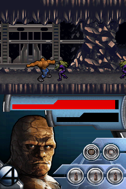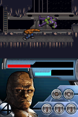 Fantastic Four: Rise of the Silver Surfer on the Nintendo DS offers a surprisingly varied gameplay experience, spread across twenty levels that shift between three distinct modes. The core of the adventure lies in side-scrolling platform sections where you take direct control of Mr. Fantastic, the Invisible Woman, or the Thing. Each hero’s unique attributes—stretch-reach attacks for Reed, defensive hovering for Sue, and brute strength for Ben—keep these stages feeling fresh, as you navigate hazards, flip switches, and vanquish waves of enemies.