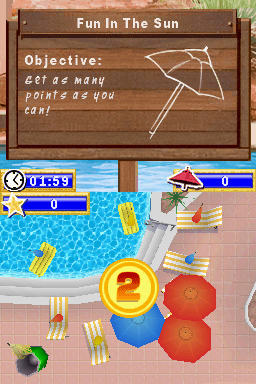 Though the DS hardware limits polygon counts and texture resolutions, the art direction makes the most of every pixel. Subtle shading and occasional particle effects—like sun glints on a pool’s surface—add polish. Even on the lower brightness settings, the color palette remains vibrant, underscoring the game’s upbeat, musical tone.