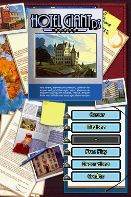 Hotel Giant DS places you firmly in the role of a hotel manager, tasked with turning half-finished properties into bustling, guest-friendly establishments. Unlike its console counterpart, this handheld version forgoes a classic free-play mode in favor of 15 structured missions. Each mission presents clear objectives—such as reaching specified profit margins, improving guest satisfaction, or tailoring room layouts—which helps keep the experience focused and goal-driven.