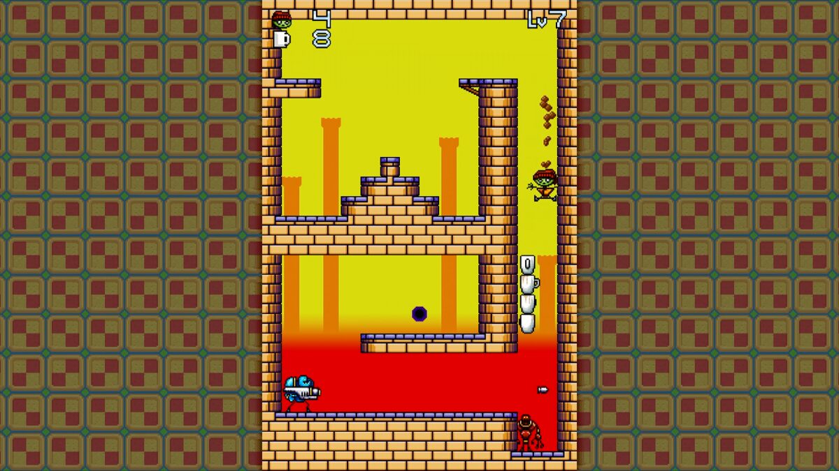 Coffee cups scattered throughout every stage add a light resource-management twist: collect enough and you earn extra lives, allowing you to tackle later levels with a bit more leeway. With more than 50 stages and checkpoints every five levels, the game encourages persistence without harshly punishing failure. The Xbox 360 port even spices things up with five bonus stages and a reordered level progression for a smoother difficulty curve.