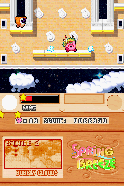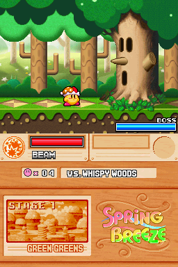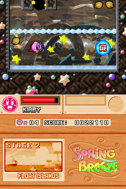 Boss encounters are particularly well-realized, showcasing oversized sprites that remain fluid in motion, even when the action intensifies. Special effects—such as shimmering water in aquatic areas or the glint of metal on mech bosses—highlight the DS hardware’s enhanced palette. The menus and HUD have been given a polished makeover, with crisp icons for each copy ability and intuitive touchscreen controls that keep the focus on gameplay rather than fiddly button inputs.
