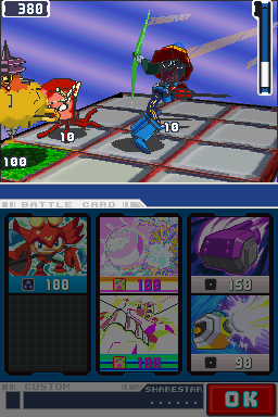 Combat takes place in a dynamic, third-person view on the Nintendo DS’s top screen. You guide Mega Man left and right across a three-lane battlefield, dodging enemy attacks while selecting Battle Cards to unleash powerful offense or bolster your defenses. This lane-based movement adds a layer of tactical positioning absent from many other handheld RPGs, forcing you to think on your feet as viruses and FM-ian foes pepper you with projectiles.