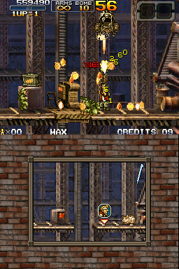 Metal Slug 7 also makes excellent use of the Nintendo DS’s dual screens. The top display shows the main action in crisp detail, while the bottom screen offers a scrollable map that tracks freed POWs, item pickups, and critical objectives. This second screen keeps you informed of your progress without pausing the mayhem above, making it easier to plan your next move or locate hidden caches.