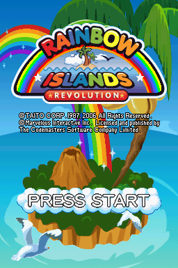 Rainbow Islands Revolution reimagines the classic bubble-and-rainbow formula for the Nintendo DS, placing Bubby and Bobby inside touch-screen bubbles and letting you draw rainbows with the stylus. On each stage, you balance between guiding your floating hero by dragging them directly or sketching vibrant arches to fend off waves of enemies. This dual-screen setup—where action plays out on both the top and bottom screens—adds a fresh layer of spatial strategy, as foes crop up above and below.