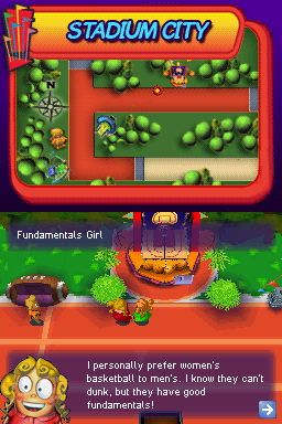Six Flags Fun Park delivers a breezy open-world experience set within the vibrant confines of a sprawling amusement park. From a top-down perspective, players guide their character using the stylus, tapping pathways and attractions to navigate crowded fairgrounds and hidden corners alike. The freedom to chart your own course—whether following a line of NPCs or striking out on your own—gives the game a light, exploratory rhythm that suits both casual wanderers and completionists.
