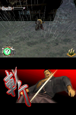 Performance is generally steady, with only minor frame-rate dips during heavy action scenes or animated stealth kills. The transition to the lower screen for kill sequences is seamless, and the hand-drawn cutscenes that bookend key missions look sharp and stylized. Overall, the graphics deliver an immersive feudal Japan setting well suited to a portable stealth adventure.