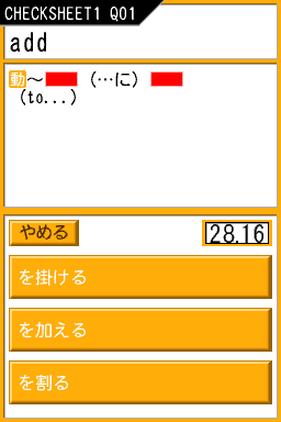 Tenohira Gakushū: Kikutan DS Basic delivers a structured daily training system that keeps you engaged every time you pick up the DS. After creating your personal profile, you’re presented with a set of 16 fresh words each day, drawn from the 1,120 most essential entries of the “Kikutan Basic 4000” lexicon. This steady drip-feed approach prevents overwhelm and reinforces retention through consistent, bite-sized lessons.