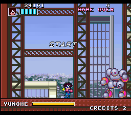 The jump to SNES hardware allowed the developers to craft more detailed sprites and smoother animations than previous entries. Raita and Azuki’s character models are bursting with personality: their fluid idle stances and dynamic attack frames make each slash and blast feel weighty. Enemy designs range from clanking robot drones to hulking cyborg brutes, each animated with distinctive walk cycles and hit reactions.