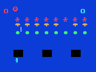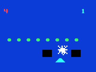 As battles progress, the Merciless Monstroth—a massive flying monstrosity replacing the classic passing saucer—enters the fray. It glides menacingly across the top of the screen, peppering your defenses with energy beams. Once the shields are depleted, Monstroth dives to hunt you directly, switching the game’s pace from strategic defense to frantic survival. Timing your movements and shots becomes crucial when you’re the hunted, not just the hunter.