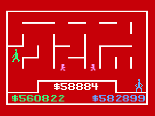 Take the Money and Run! transforms maze-navigation into an economic battleground, challenging players to outwit robotic representations of fiscal forces. Each of the seven circuit-like labyrinths—Income, Reward, Investment, Expenses, Thief, Taxes, and Inflation—introduces a unique risk/reward dynamic. In the first three mazes, you actively pursue the robots to bank gains, while in the latter four you must evade capture to avoid financial penalties. This push-and-pull keeps every playthrough suspenseful, as a single slip can cost you thousands of virtual dollars.