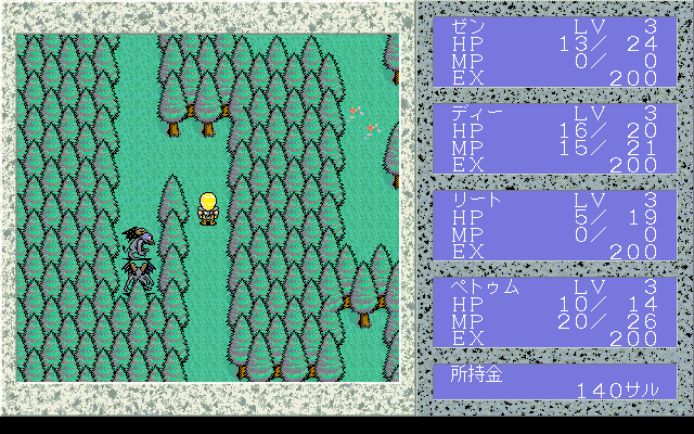Progression in Iraisha wa Monster? caps at around level 10, reflecting its episodic structure as the first installment of Disc Saga. This bite-sized approach keeps the difficulty curve tight and the narrative focused, but it also means growth comes in measured increments. Every victory against goblins or minor boss grants incremental HP or MP gains, and by the time you reach the northern forest stronghold you’ll already see the four heroes living up to their titles—though there’s always room for more strategy and party synergy in later episodes.
