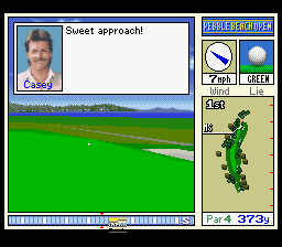Pebble Beach Golf Links places the player on one of the most iconic golf courses in the world, demanding precision and strategy from the very first tee. You assume the role of a professional golfer, viewed from a third-person perspective, and must master both power and accuracy to conquer the sweeping fairways and treacherous sand bunkers. The swing-control mechanic uses a classic three-click system: click to start your swing, click again to set the power meter, and click a final time to determine accuracy. This tried-and-true formula ensures that every shot feels meaningful, as even slight mistimings can send your ball careening into the rugged coastal rough.
