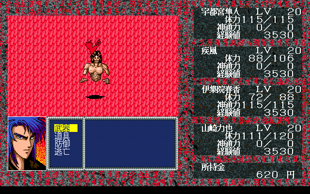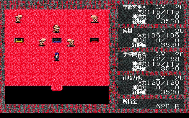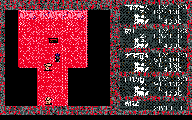 Visually, Chūgokuhen – Daisanshō embraces the late-’90s aesthetic with pixel art that balances charm and menace. Dungeon walls are textured in muted stone hues, while demon designs range from grotesque abominations to sleek, dragon-like adversaries. The first-person battle sequences feature detailed enemy portraits that heighten the impact of each encounter and provide a welcome contrast to the sparse exploration view.