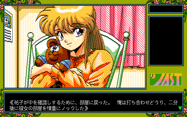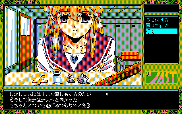 Tenshitachi no Gogo IV: Yūko follows the classic structure of a traditional Japanese adventure game, relying on menu-driven interactions rather than elaborate puzzles. As a substitute teacher at the strict St. Sophia Catholic girls’ school, players navigate through verb commands—“Look,” “Talk,” “Use,” and so on—and cycle through sub-menus of inventory items or NPCs to interact with. Progression hinges on exhausting every dialogue option and examining key objects until the story naturally unfolds.