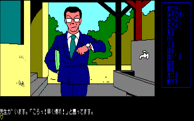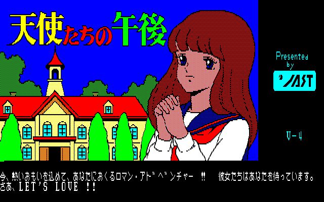 Visually, Tenshitachi no Gogo is a snapshot of late-1980s Japanese computer graphics. Character portraits are drawn in a then-innovative anime style, featuring bold outlines and expressive eyes. While the sprites are fairly low-resolution by today’s eyes, they carry a nostalgic charm and a surprising amount of personality, given the hardware limitations of the era.