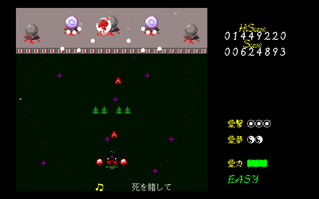 Tōhō: Fūmaroku refines the classic vertically scrolling shooter formula into a high-octane bullet hell experience. Reimu Hakurei rides atop Genji the turtle, transforming the ship metaphor into something distinctly Touhou—slow and steady but capable of powerful bursts. Enemies swarm the screen in intricate patterns, requiring precise movements and quick reflexes to dodge the deluge of projectiles.