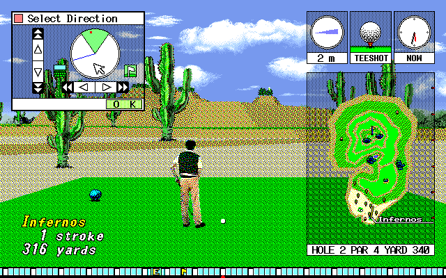 Though the game doesn’t boast photorealistic textures, its sprite-based graphics are sharp and expressive. Every swing is accompanied by a satisfying animation, from the golfer’s wind-up to the follow-through, and the ball’s flight path is depicted with clear trajectory arcs. The dynamic camera angles on long drives or perilous chip shots add a cinematic flair, highlighting the scale of drops and the depth of water hazards.