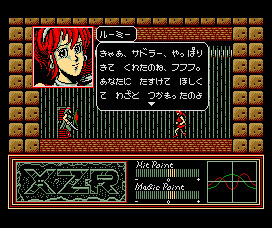 Visually, XZR embraces Falcom’s classic 16-bit-inspired aesthetic, delivering finely detailed sprite work in both overhead town screens and side-scrolling dungeons. Towns are bustling with townsfolk, market stalls, and madrassas rendered in warm, earthy tones that evoke medieval Persia. When you enter a dungeon or enemy castle, the palette shifts to cooler greys and blues, heightening the sense of danger and claustrophobia.