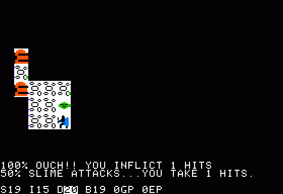 As an early graphical roguelike, Beneath Apple Manor strikes a charming balance between simplicity and functionality. The interface uses basic sprites for characters and monsters, conveying essential information without unnecessary flair. While modern gamers may find the visuals dated, the minimalist style emphasizes gameplay clarity and evokes a sense of nostalgia for the genre’s origins.