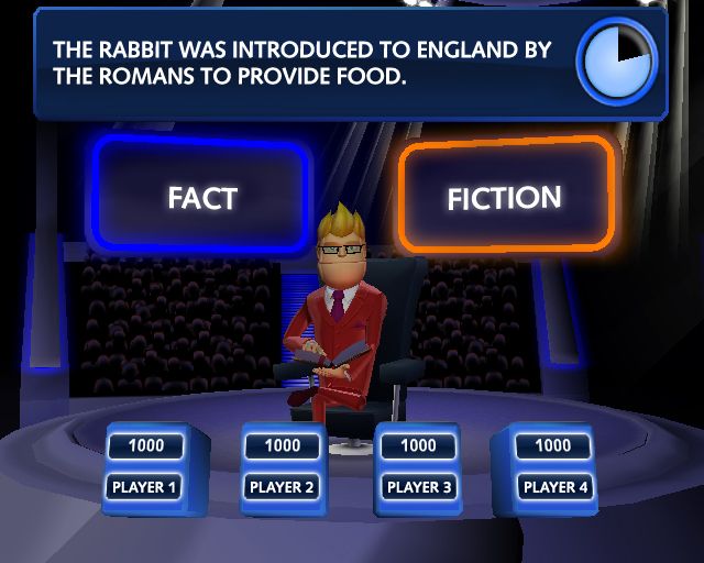 Visually, Buzz! The Schools Quiz captures the essence of a slick television studio. Bright stage lights, dynamic camera angles and polished 3D backgrounds immerse players in a professional game show environment. Animated host characters add personality, cheering contestants on or humorously reacting to incorrect answers, which helps maintain engagement even during slower rounds.