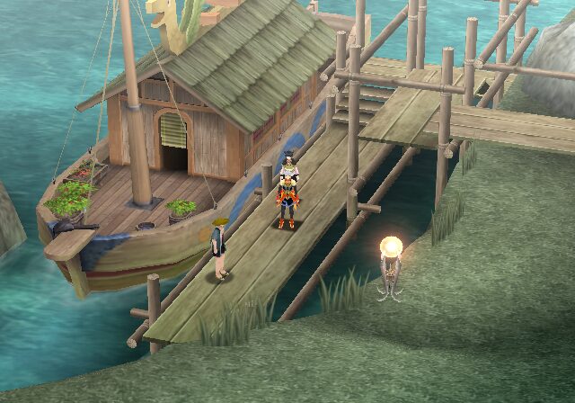 Suikoden V employs beautifully hand-drawn backgrounds and richly detailed character sprites that evoke a painterly charm. From the burned-out wastelands of Lordlake to the lush valleys surrounding the capital, each locale establishes its unique mood through color palettes and environmental details. The world map, though rendered in 3D, maintains the series’ iconic storybook aesthetic.
