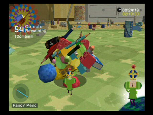 Brief cutscenes between levels showcase the quirky character designs of the King of All Cosmos and the ever-stoic Prince. These interstitials feature playful animations and bold color palettes that feel like a living pop-art gallery. Even the user interface, from the mission briefing screen to the katamari size meter, is clean, readable and infused with personality.