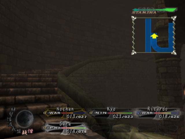 Character portraits in town and during dialogue are hand-drawn with a distinct Japanese art style, providing personality and charm to otherwise stoic classes. In contrast, in-dungeon character models and enemy designs rely on simple polygons but compensate with effective animations for attacks and spellcasting. While the draw distance is limited, clever use of fog and lighting hides pop-in and keeps the mood intact.