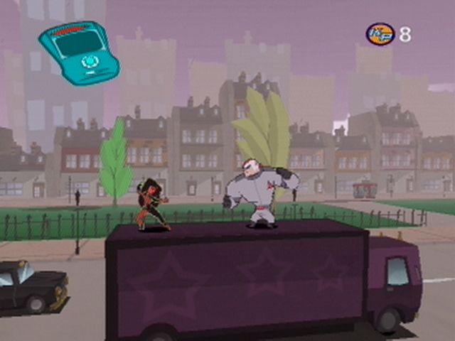 Control-wise, both Kim Possible and Shego share a common moveset that includes kung-fu attacks, backflips, and double jumps, granting tight, responsive platforming. As you progress, both characters gain access to a grapple and EMP bomb, which not only diversify combat but also introduce puzzle elements by disabling certain machinery or enemies. On top of these shared abilities, each heroine boasts a unique power: Kim’s super sticky gum lets her latch onto switches or snag distant foes, while Shego’s magnetic force can manipulate metal objects from afar. This differentiation rewards players for replaying levels with a different character.