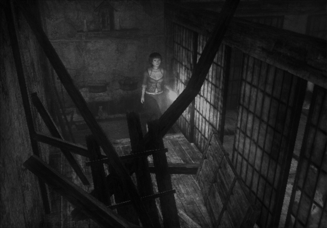 Visually, Fatal Frame III leans into moody textures and unsettling lighting to create an atmosphere of dread. The haunted mansion itself is rendered with a meticulous eye for detail: warped wood panels, peeling wallpaper, and flickering lamps that cast long shadows down empty hallways. Subtle particle effects like drifting dust and fleeting apparitions heighten the sense of an otherworldly presence stalking your every move.