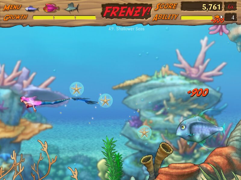 Feeding Frenzy 2: Shipwreck Showdown picks up right where the original left off, offering 60 brand-new levels that challenge you to climb the aquatic food chain. You begin life as a tiny fish in a vast ocean, feasting on even smaller prey while staying vigilant to evade larger predators. This simple eat-and-grow mechanic feels instantly satisfying, with each consumed fish visibly increasing your size and expanding your feeding radius.