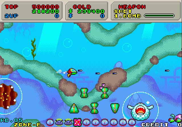 Beyond that, each game brings its own flavor: Fantasy Zone Gear’s handheld-tuned pacing keeps stages tight and portable; Super Fantasy Zone on Mega Drive stretches out the action with sprawling maps and enhanced weapon systems; and experimental offshoots like Naval defender Galactic Protector deliver brief but memorable departures from the core formula. The inclusion of Fantasy Zone: The Maze introduces a top-down puzzle challenge, while the elusive Neo Classic title by Sunsoft injects fresh visual flair and redesigned enemy formations. Collectively, this compilation covers the series’ every twist and turn, making for a varied and addictive package that never feels stale.