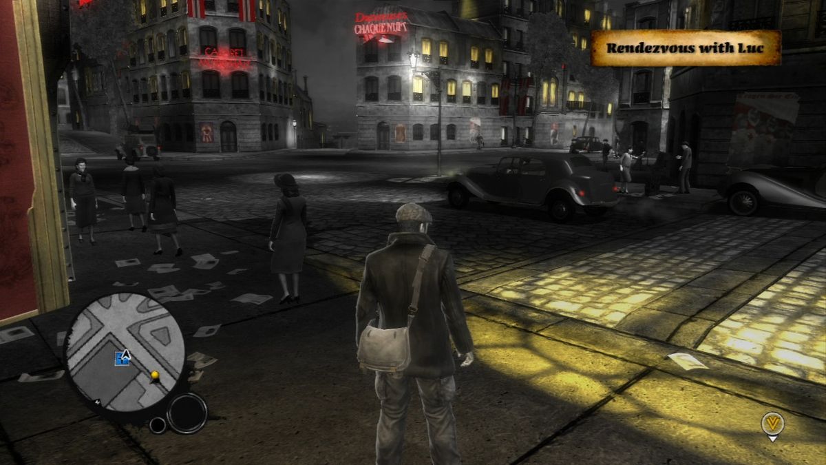 The Saboteur’s visual identity is its most striking feature. Initially, all of Paris appears in stark black and white, evoking the look of classic WWII photography and reinforcing the city’s oppression under Nazi rule. Only the red of swastikas and the warm glow of interior lights break this monochrome palette, drawing your eye to key targets and safe havens alike. This artistic choice not only pays homage to films like Schindler’s List but also gives each liberated neighborhood a profound sense of rebirth when color gradually returns.