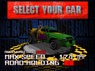 Burning Road offers three difficulty tiers—rookie to expert—that adjust both opponent AI and checkpoint timing, allowing beginners to find their groove and seasoned racers to face a formidable challenge. The Practice mode is a laid-back way to learn track layouts, while Career mode spices things up with elimination-style multi-heat events: each lap, the last-place racer is knocked out until only the champion remains. For those craving head-to-head competition, a two-player split-screen via the PlayStation Link Cable delivers adrenaline-fueled duels where every drift and boost counts.