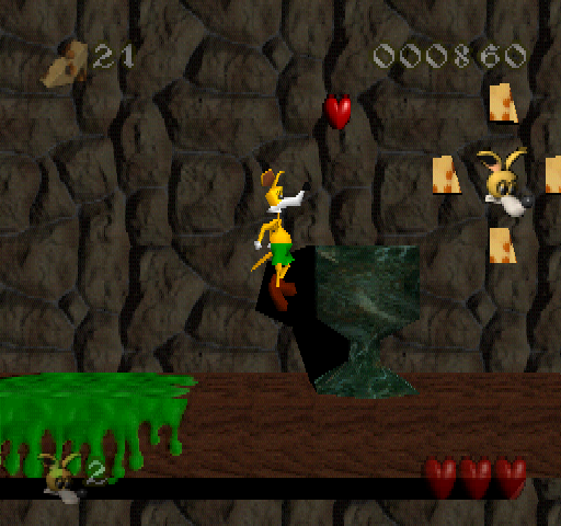 Cheesy stands out as an ambitious debut for CTA on the PlayStation, offering a well-rounded package that blends classic platforming with first-person action. The pacing is varied enough to prevent monotony, with each new environment introducing unique obstacles and enemies. Whether you’re navigating collapsing mine-cart tracks or tiptoeing through alien-infested laboratories, the game consistently maintains a sense of excitement and discovery.