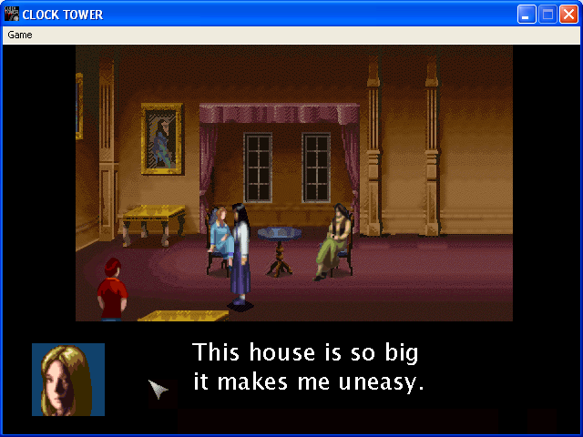 Clock Tower thrusts you into the role of Jennifer, a newly adopted teenager whose hopes for a loving home quickly curdle into a nightmare. Alongside a group of fellow orphans, she arrives at the Barrows Mansion under the care of the kindly Mary and her reclusive husband, only to discover that not all is as it seems.
