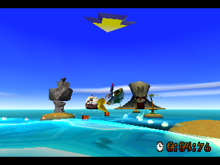 Warped excels in variety. You’ll dive beneath the waves on a motorized scooter, roar through medieval villages on horseback, race against foes on motorcycles, engage in aerial dogfights, and even ride tigers in dense jungles. Each stage introduces new mechanics or power-ups—Super Belly Flop, Double Jump, Death Tornado Spin, Fruit Bazooka, and Speed Shoes—earned by defeating bosses and opening up fresh ways to traverse older levels. Time trials further extend replayability, challenging you to hit Time Boxes and chase sapphire, gold, or platinum relics under the clock.