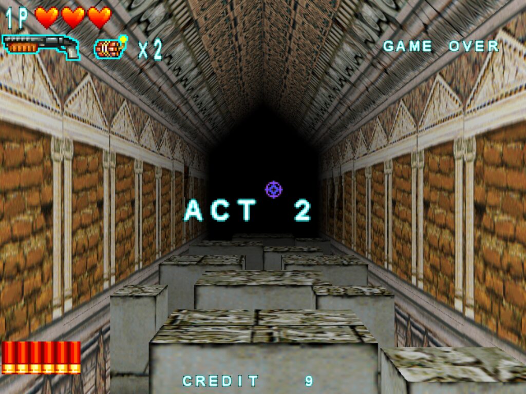 Visually, Crypt Killer leans heavily into moody, horror-themed environments. The designers have crafted a variety of backdrops—from flickering torchlit crypts to eerie underwater ruins—that establish a tense atmosphere. Each locale is populated with suitably grotesque enemies rendered in chunky 3D models that evoke the mid-’90s arcade era.