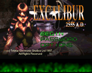 The visuals in Excalibur 2555 A.D. strike an impressive balance between medieval motifs and sci-fi aesthetics. High-tech laboratories fused with stone archways, neon-lit chasms alongside moss-covered stone, and sleek metallic armor adorned with Celtic runes all underscore the game’s time-travel premise. Textures are crisp, and environmental details—like flickering holographic scripts on ancient walls—add layers of immersion.