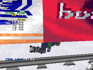 Visually, Freestyle Boardin’ ’99 embraces the chunky polygonal style common to late-generation fifth-gen console games. Character models are bold and colorful, with exaggerated proportions that give each boarder a distinct personality. While textures may appear pixelated by modern standards, the vibrant livery on boards, park rails, and sponsor ads breathes life into every course.